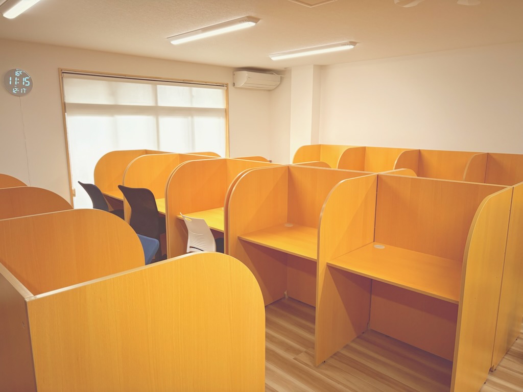 そんな自習席ですが、アルバイトの方の協力もあり自習机を増やしました。1つが大きいので、2人がかりでないと組み立てるのが困難でした。ここでたくさん勉強して、合格できるよう努力しましょう!